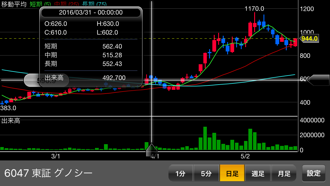 好材料豊富、終値で1,000円に乗ってくると年初来高値1,230円更新が意識される展開。