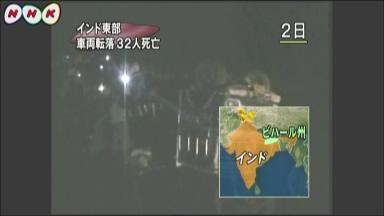 インド 寺院の死者140人超 ↑ インドでバス転落 32人死亡