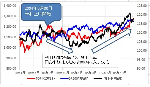 2004年に利上げしたときには、利上げ開始時からマーケットが織り込み始めるのに半年から一年近くかけた印象です。(別添えの画像をご覧ください。)