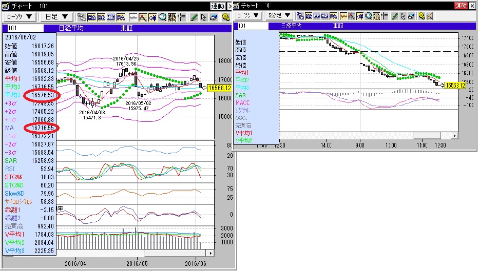 25日平均線の16716.55円までの下げと予想していたが、