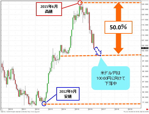 2016年6月16日時点の月間平均 107.14円(120.96円)