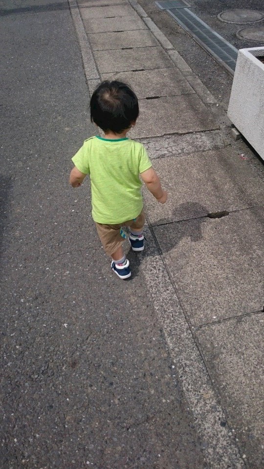 パパを引き連れて散歩中~勇敢な背中になりましたね!