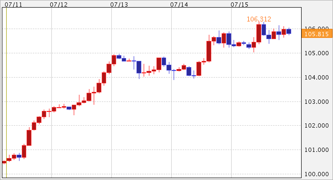 今日も底堅さはありますね。105円を割ろうかという場面もありましたが、しっかり反発して106円近辺を維持しています(`・ω・´*)b