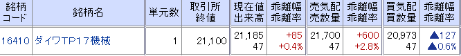 ダイワの業種別ETF(機械)の本日のNAVは21666円ですが、市場の終値は21100円でした。