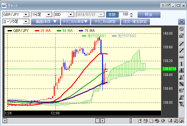 ポンド円が、日本時間に、3回も、1円以上、急騰急落しました。