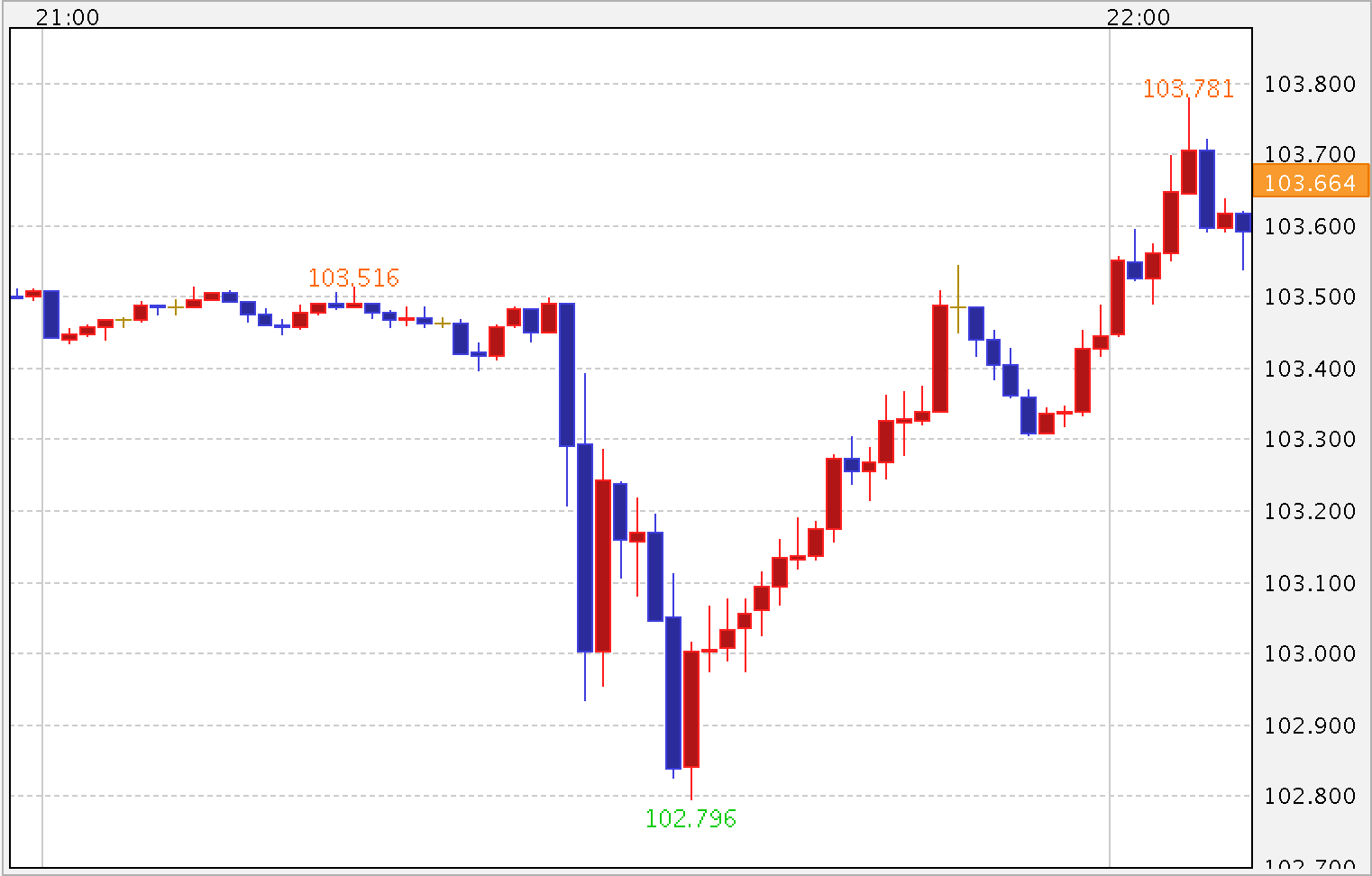 しかしながら、値動きとしては以下のようになっており、初動は値を下げたものの、その後は反発しています↓