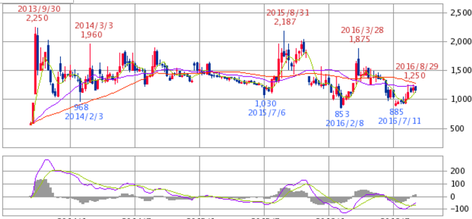 ちょうど二つのライン上まで価格帯が来てるから もしかしたら材料が出るのかもしれない。しかしいずれにしても 価格は押し戻されそうな銘柄だけど。www