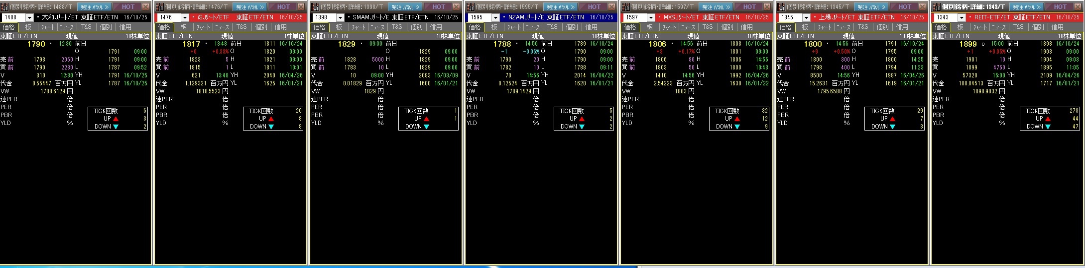 2016/10/25 の大引けの、東証REIT指数に連動するETFの状況です。
