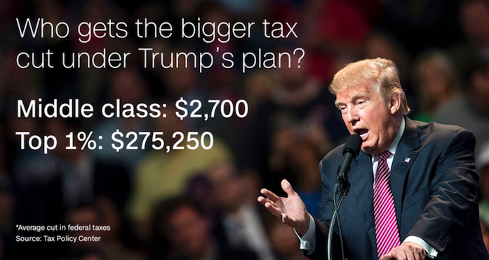 ↑富裕層の大幅減税を公約に掲げたトランプですが実現性は…。