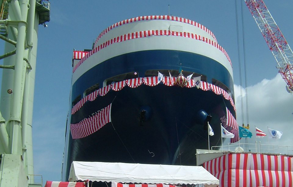 進水式ですか~懐かしい。大学時代に造船会社からの依頼演奏があって、よく進水式に楽器演奏に行ってました。ファンファーレとかいろんな国の国歌とか吹かされた覚えがあります。