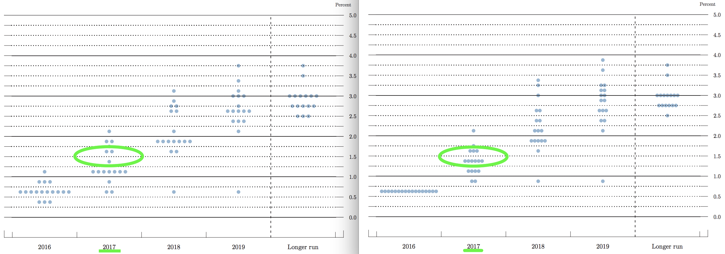 という話ではなく、先ほど発表されたFOMC(連邦公開市場委員会)の結果では、来年の利上げが3回になるとの見通しが伝えられたことで、大きくドル買いに傾いています。