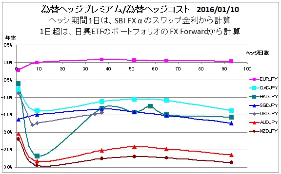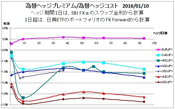 2017/01/10 付けの、日興ETFのポートフォリオのFX forwardで決済まで1日超の期間があるもののヘッジコストを年率換算しました。