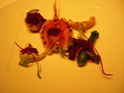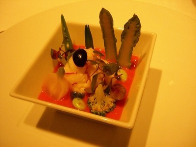 (下村シェフ、立体的な盛り付けが好きみたいです。アスパラが刺さっているのが、可愛い!)