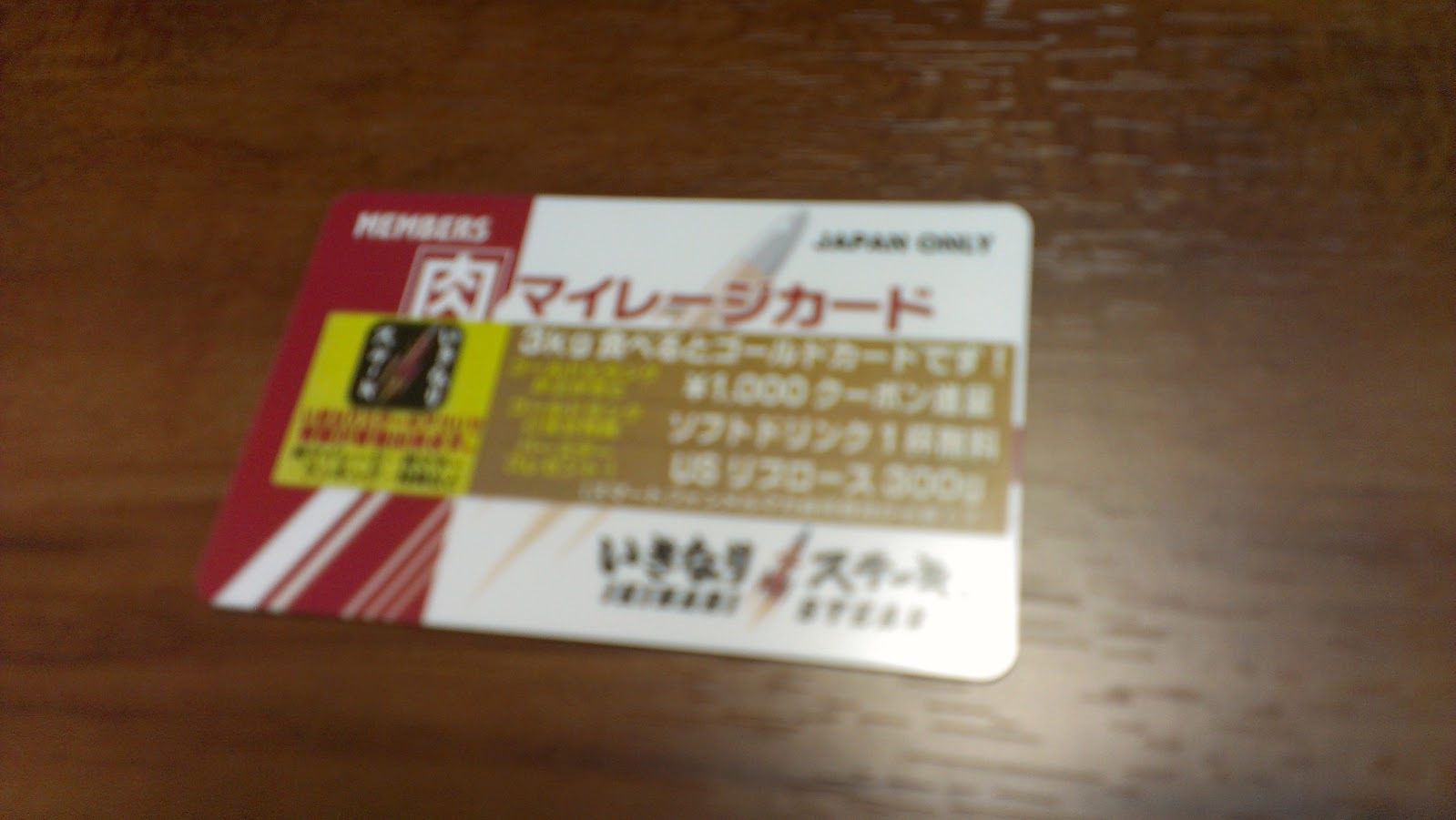 ピンボケに成っちゃってますが、肉マイレージ作ってもらいました
