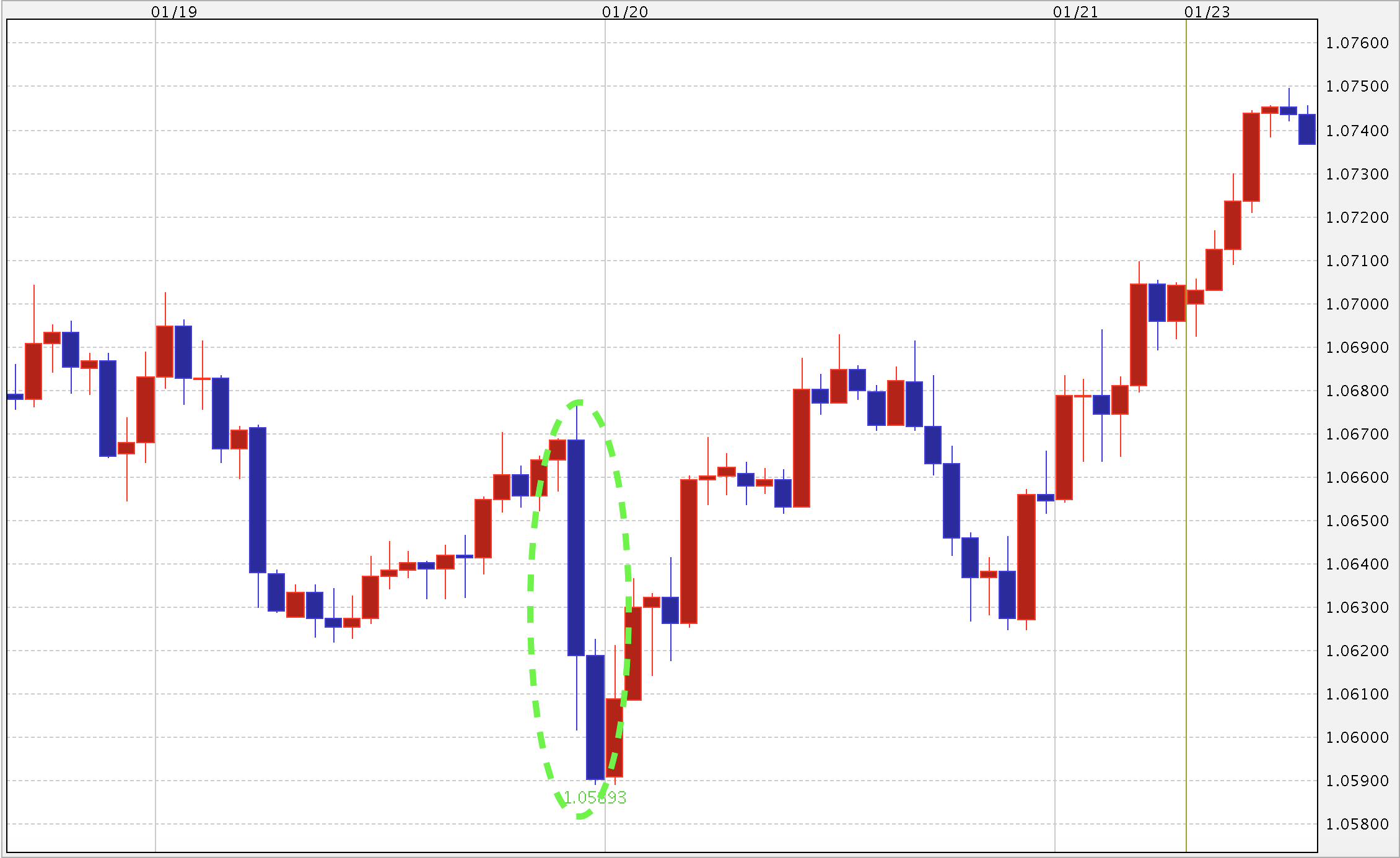 ↑前回1月19日の会見直後はユーロ安。(チャート:外為どっとコム