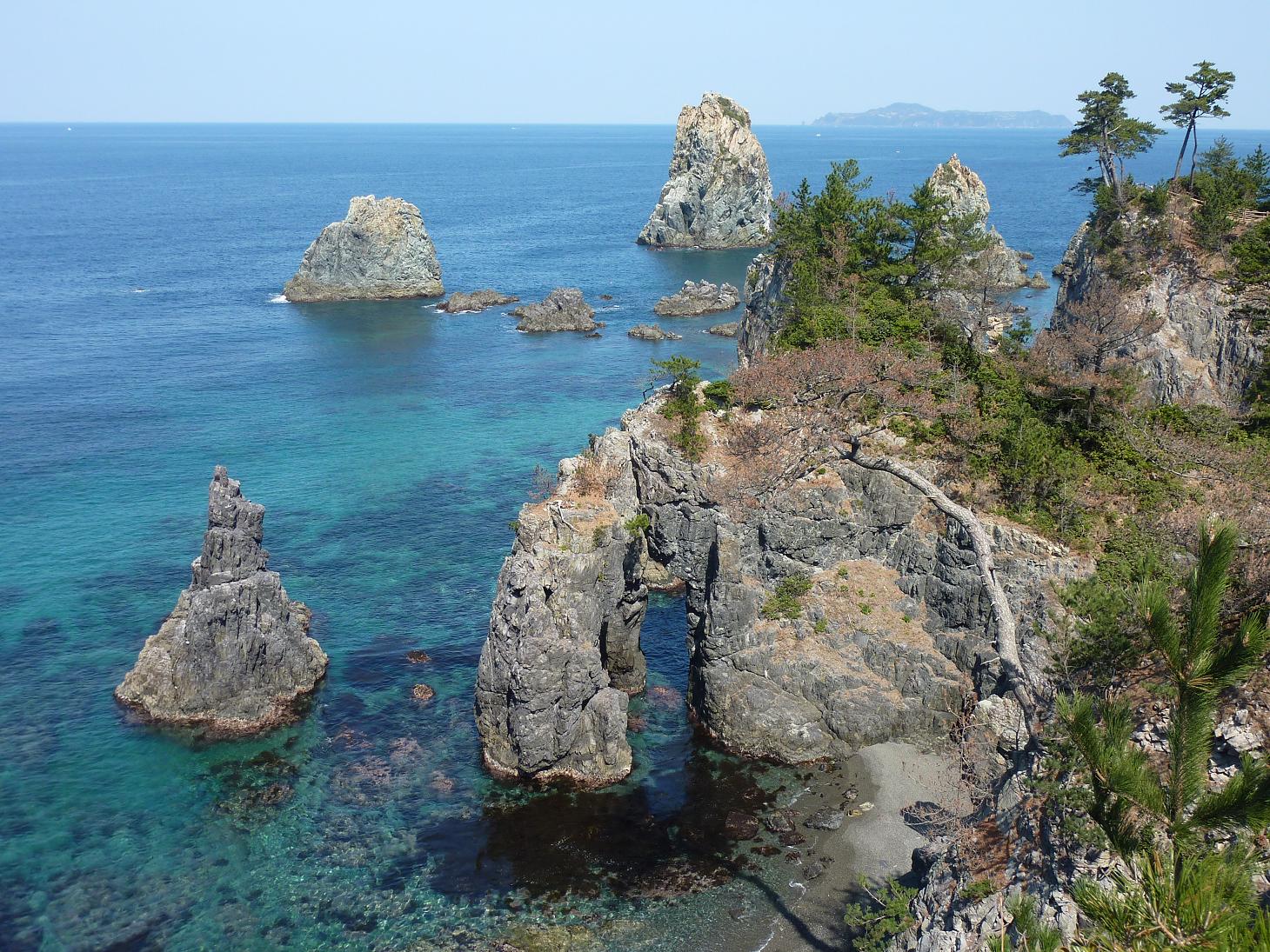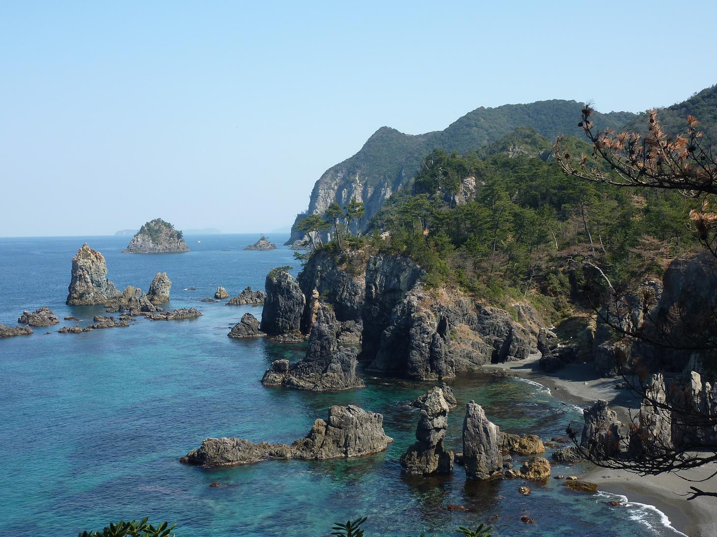 北長門海岸国定公園を代表する島のひとつ、青海島(おうみじま)。