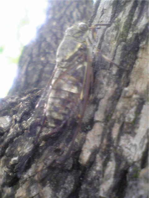 どこにいるかな?むしもどこにいるかわかりません。写真も3回目にあたりです。ツクツクボウシですが皮に隠れてわかりません。泣き声だけが聞こえます。
