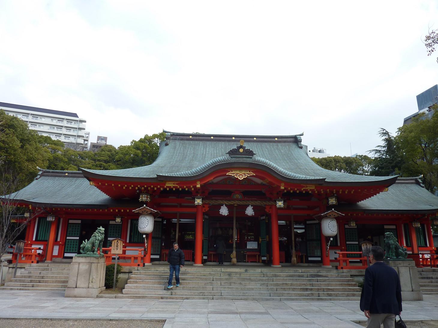 生田神社の拝殿は一部テントが使われており、