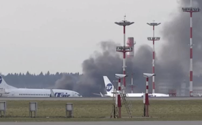 ↑ティラーソン外相を迎え入れたロシアの空港は黒煙が立ち込めており…。