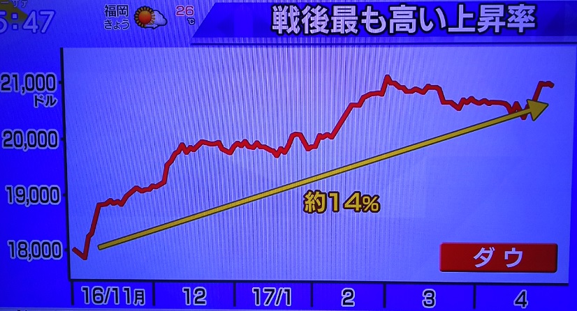 当選直後は急落しましたが1日で戻り、そこから急上昇でした。