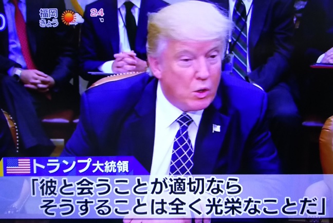 今日のニュースでトランプ大統領が北朝鮮金正恩委員長と会談を考えているらしいです。