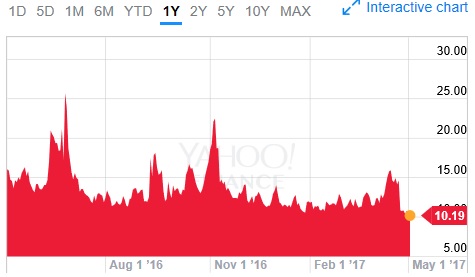 「VIX短期先物」についても3円下落しています。