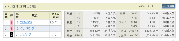 1着の馬は、初出走なので、