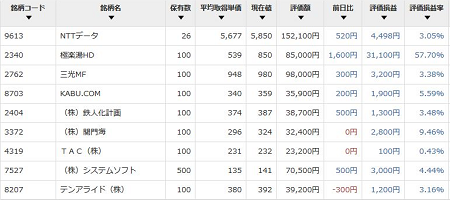 貧乏ながらもシコシコ現物を買い集め、ようやく全銘柄プラスになりました。