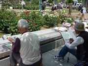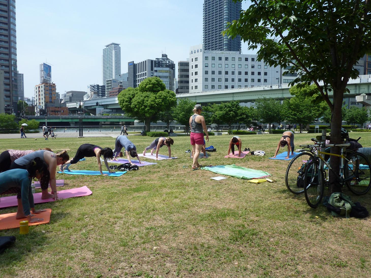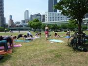 みんなでストレッチ。(こちらはバラ園ではありませんが。)