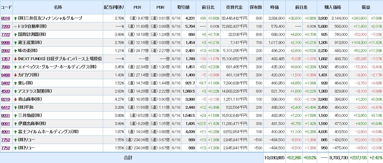 ただ、含み損益は、銀行株は堅調なものの、それ以外が冴えないのが気がかり。