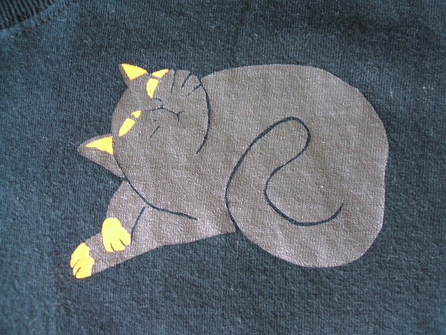 この猫ちゃんTシャツは頂き物です。行きつけの理容室の女の先生が下さいました!