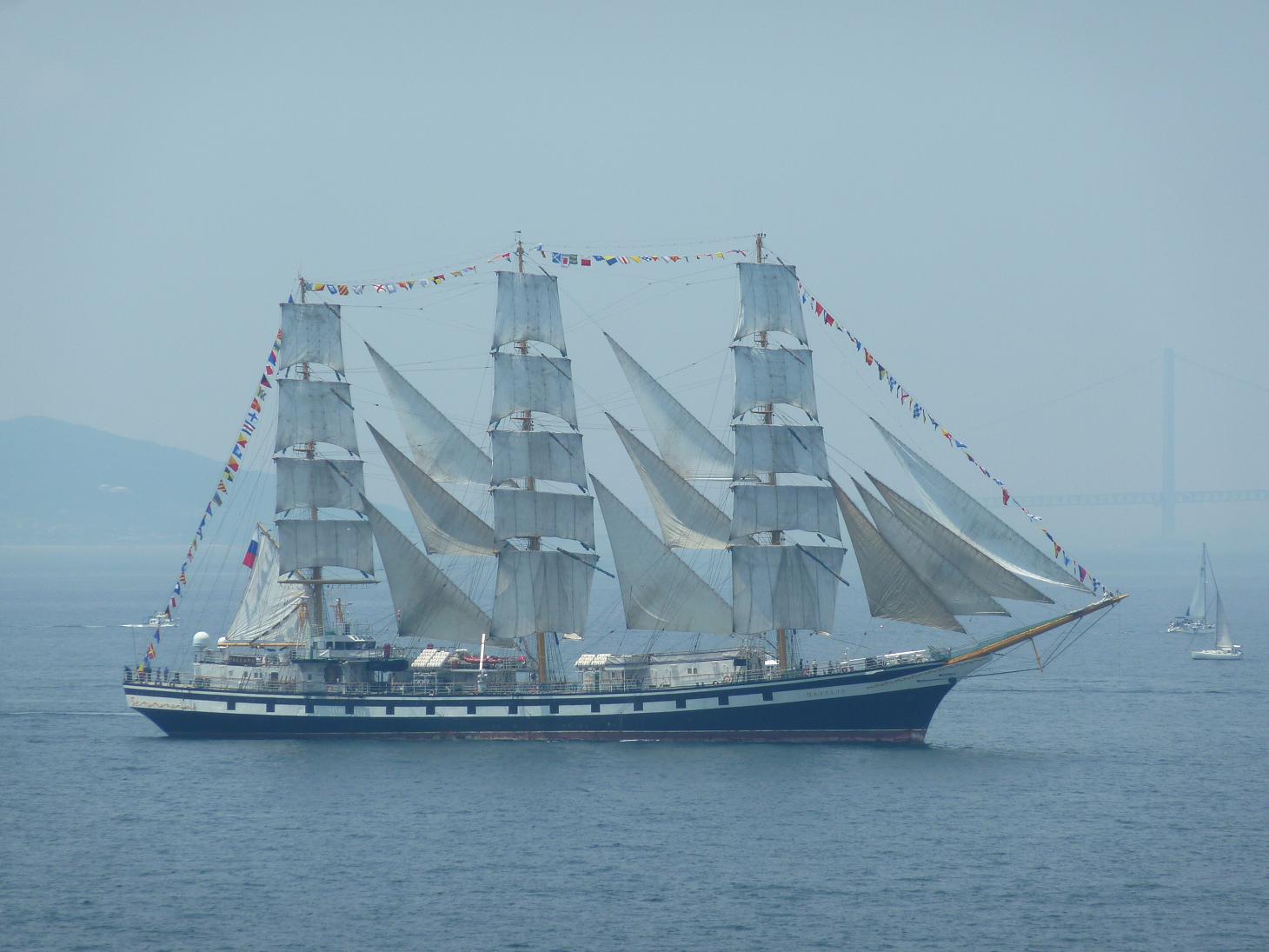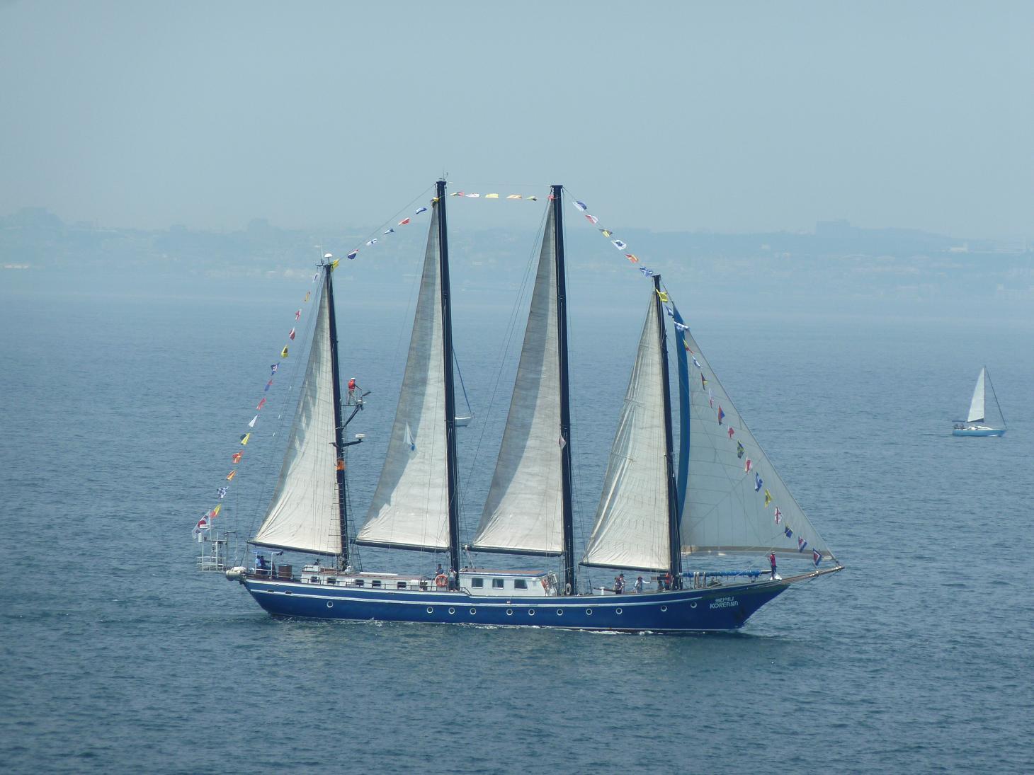 海上から帆船を見ると、陸上とは違った迫力がありました