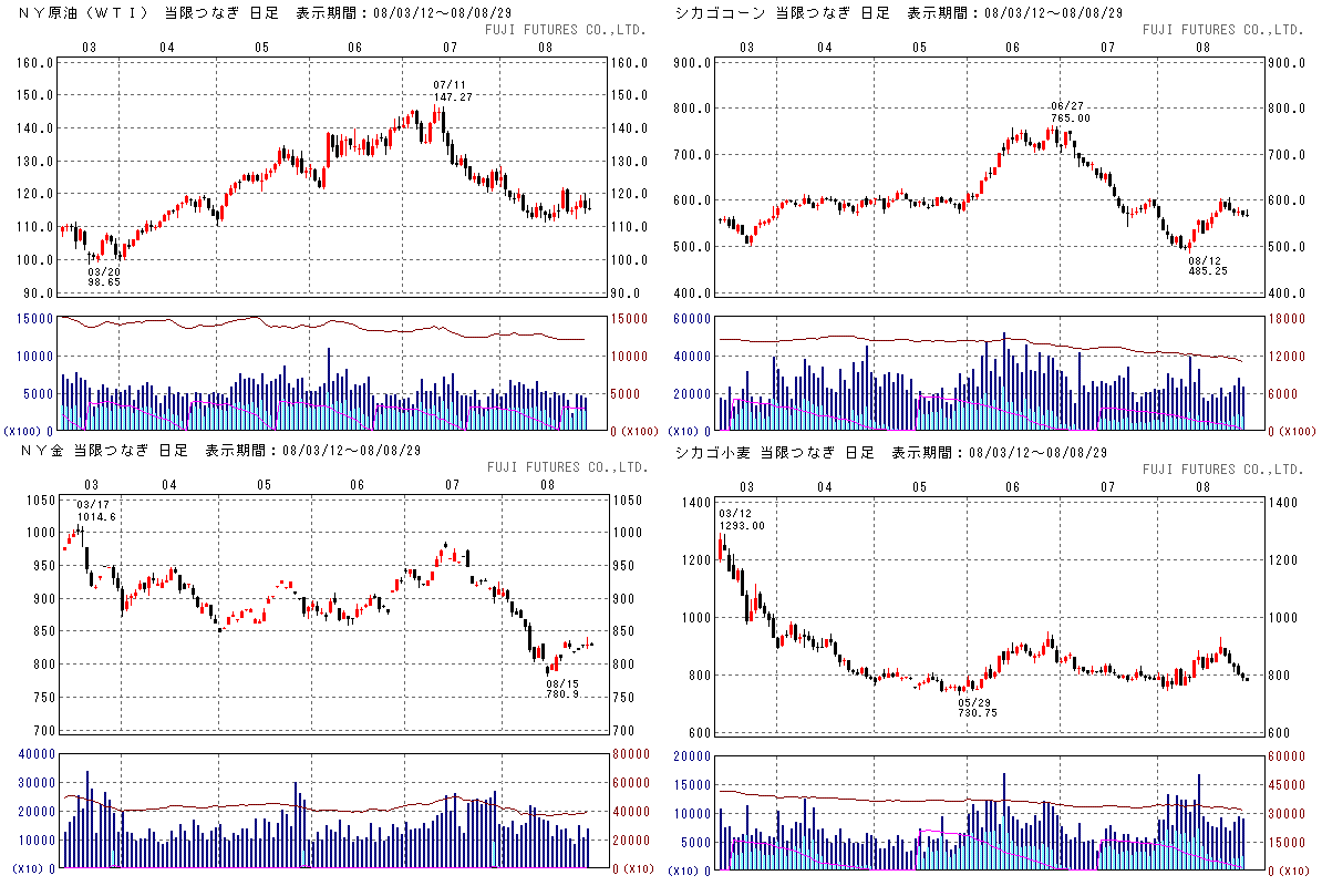 ハリケーンが近づいてきたことにより石油関連施設への影響が懸念され、原油価格は上昇しました。ただ、120ドル(WTI)に近づいても押し戻されることが多く、上値も重いなといった印象です。