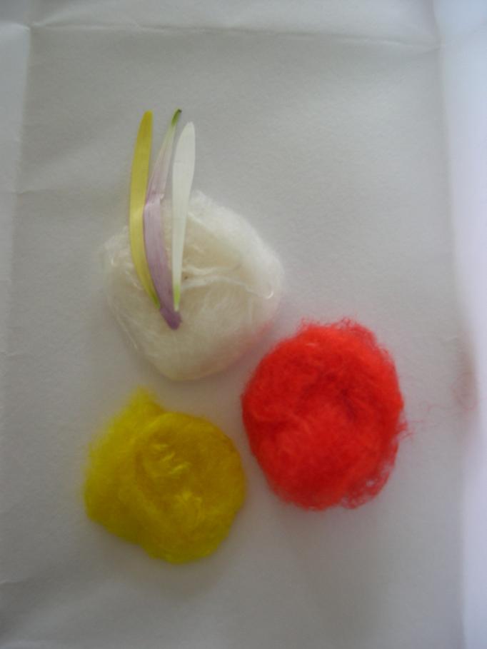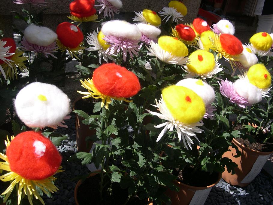 白菊には黄色い綿、黄菊には赤い綿、赤(紫)菊には白い綿を使い、