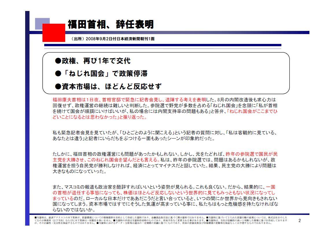 たしかに、福田首相の政権運営にも問題があったかもしれない。