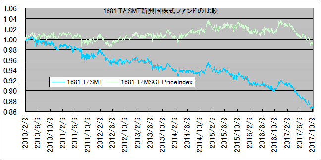 1681.Tのパフォーマンスは、SMT新興国株式インデックスファンドよりも年率1.85%低い。