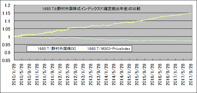 1680.Tのパフォーマンスは、野村の外国株ファンド(DC用)よりも年率0.37%低い。