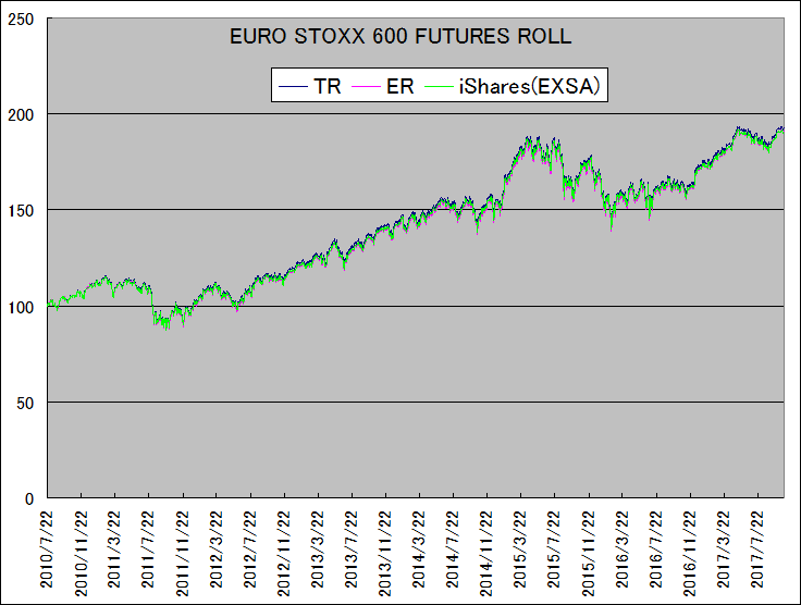 先物ロングによる投資を、STOXXR Europe 600 Futures Roll Index のTotalReturnおよびExcessReturn