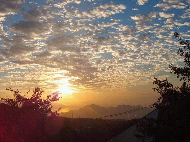 自宅の窓から夕方西の空をみれば、、ステキな夕焼け雲と夕焼けが、、一面に広がり、、