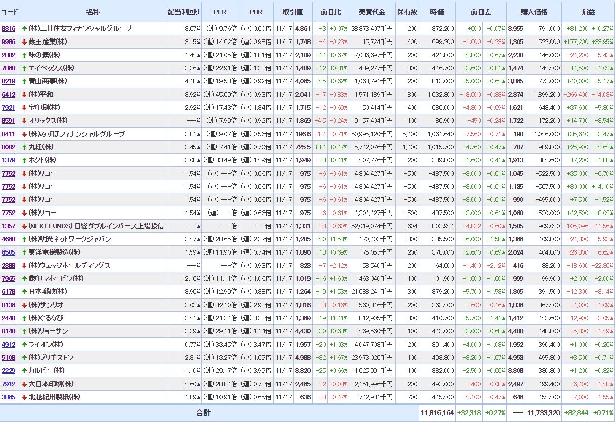 含み益:14銘柄(+2 )