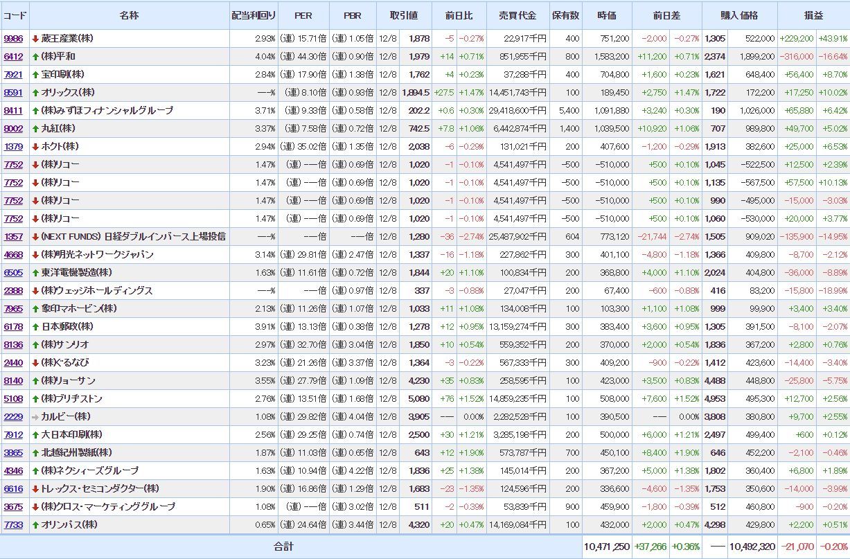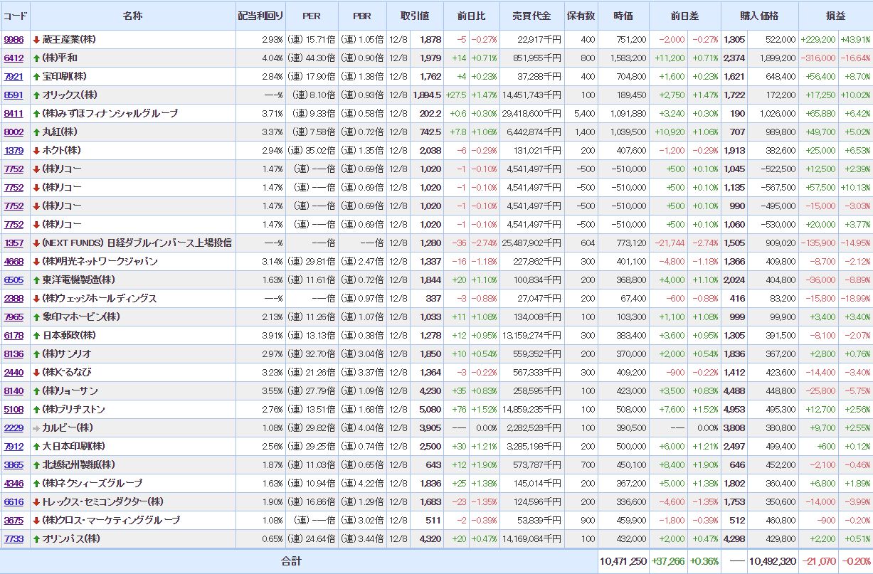 含み損:11銘柄(- )