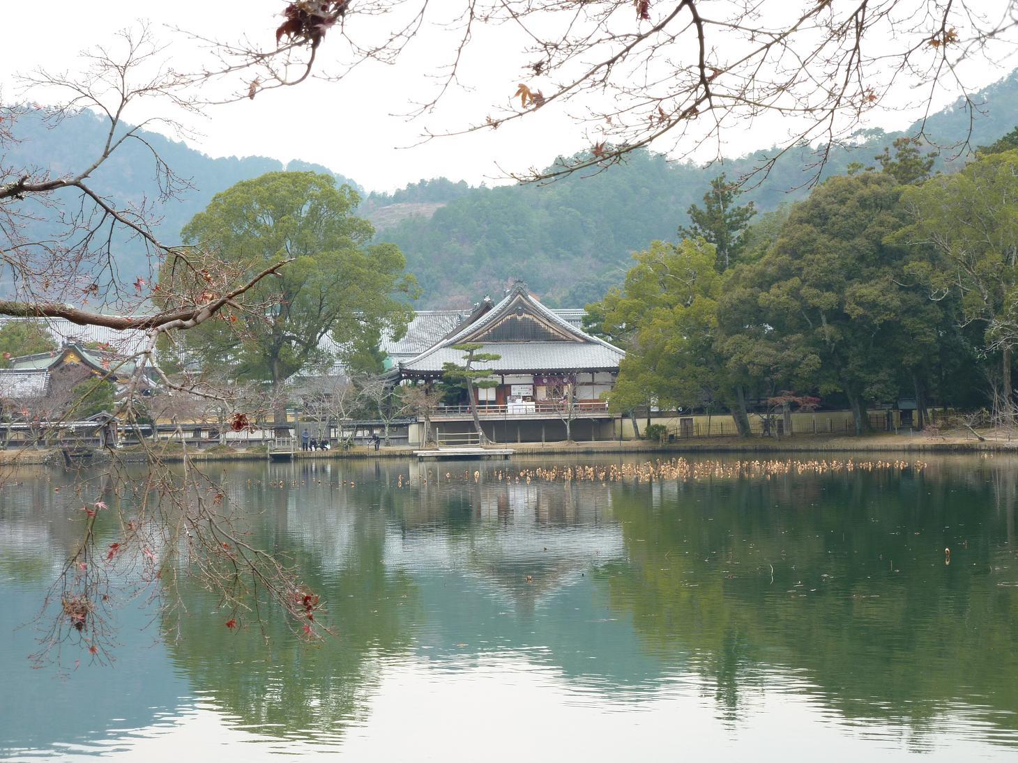 嵯峨天皇が大覚寺の大沢池で菊を手折り、