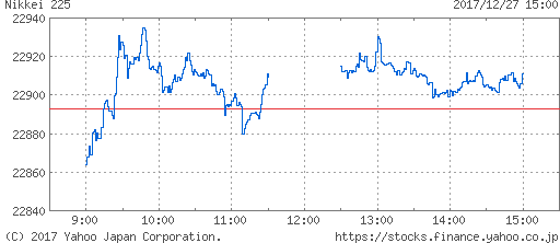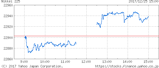 始値22,770.44の後はほぼヨコヨコ。膠着状態。