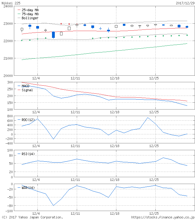 12月の日経は、月初は22,916.93で始まり、その後はヨコヨコ。