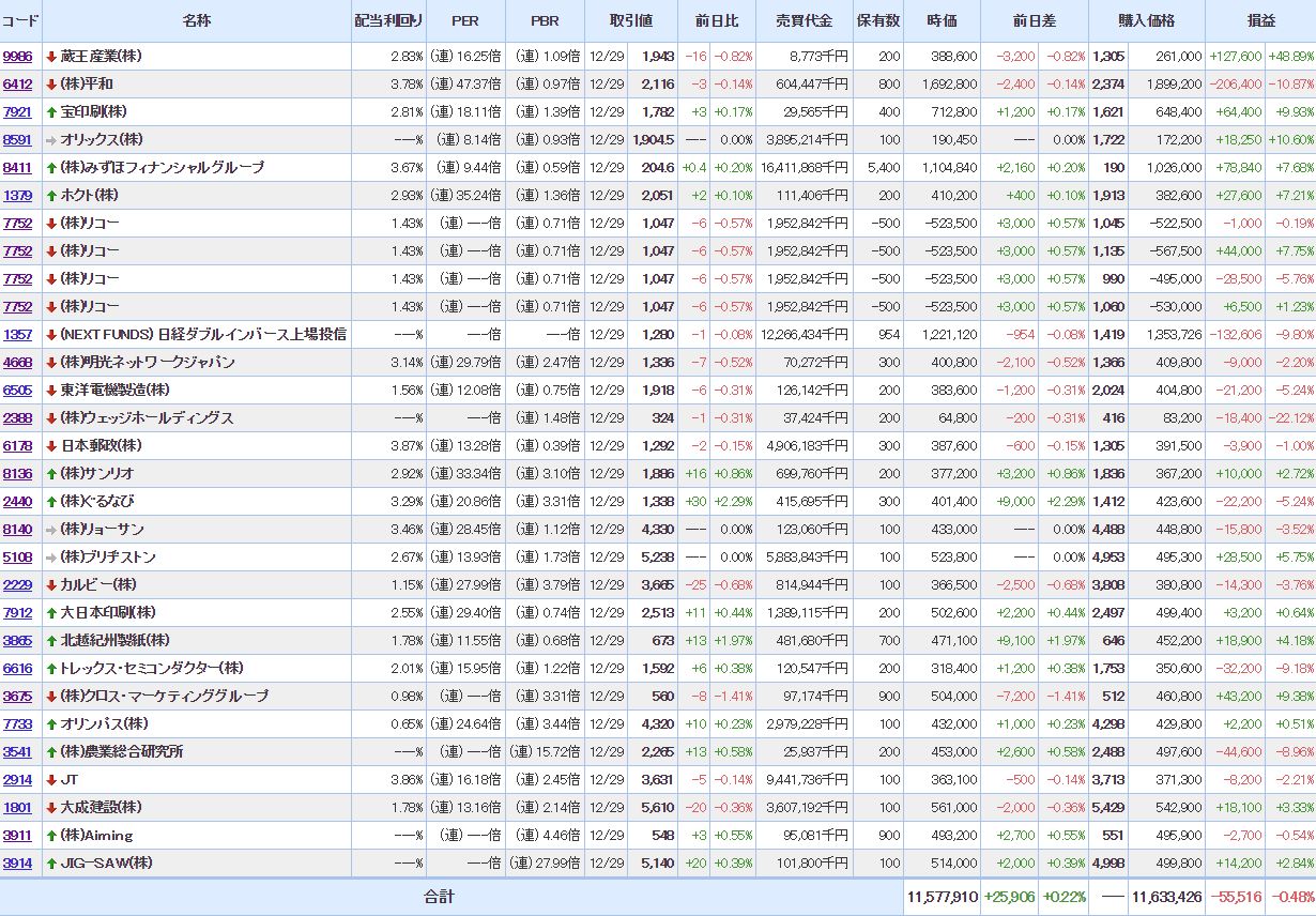■9986 蔵王産業 @1,305 → @1,890 一部売却