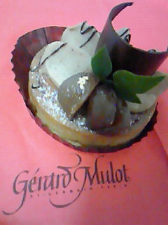 というのも、カシスのムースと、マロンクリームがあって、台にはベリー風味のガナッシュと、粉の入っていないビスキュイが。