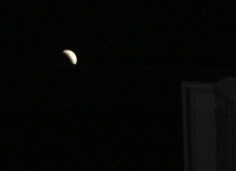 昨夜の月食、思いのほかよく晴れてバッチリ見えました。といっても寒いので玄関外でちょっと見ただけ。