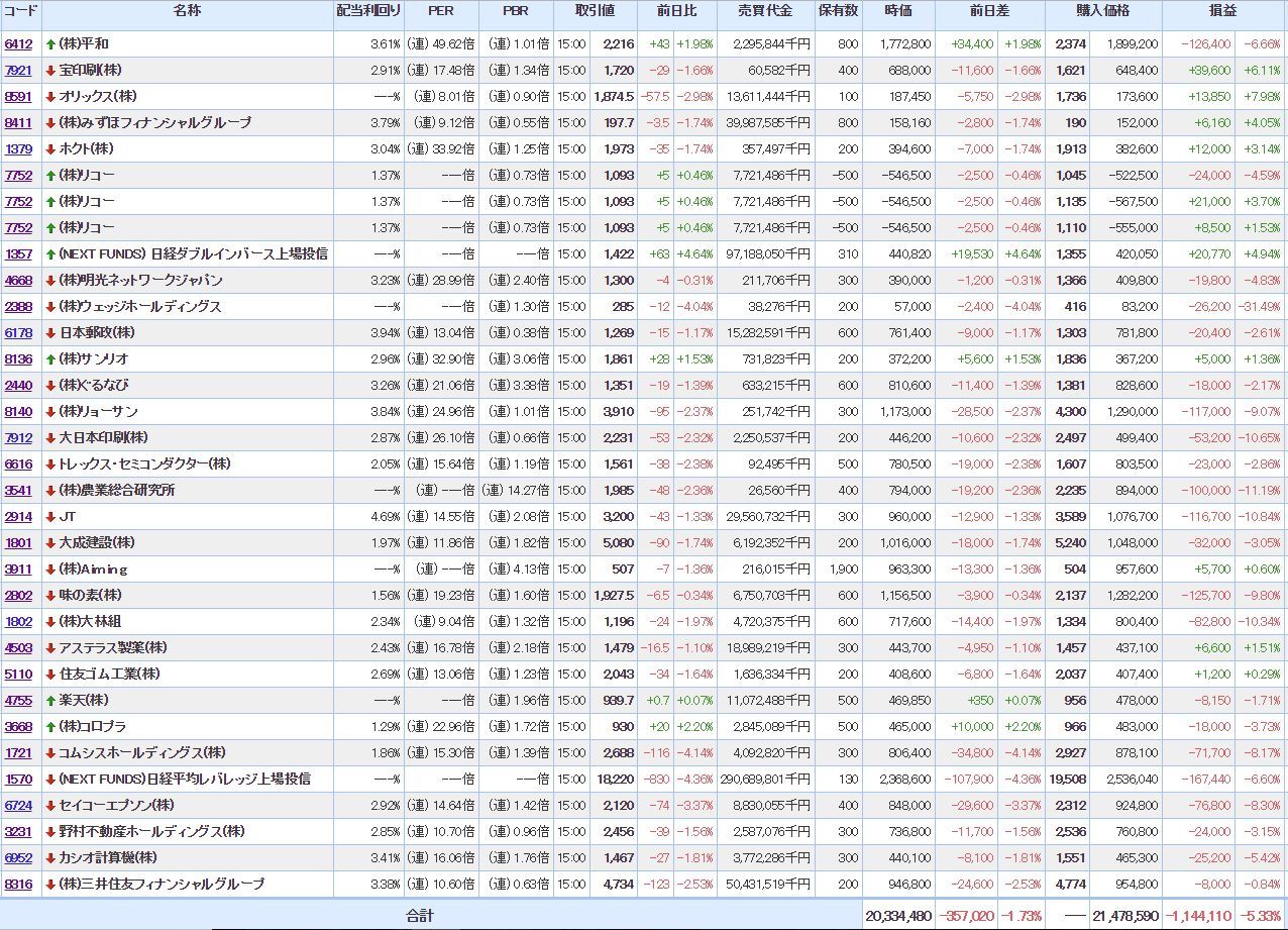含み損:19銘柄(+3)
