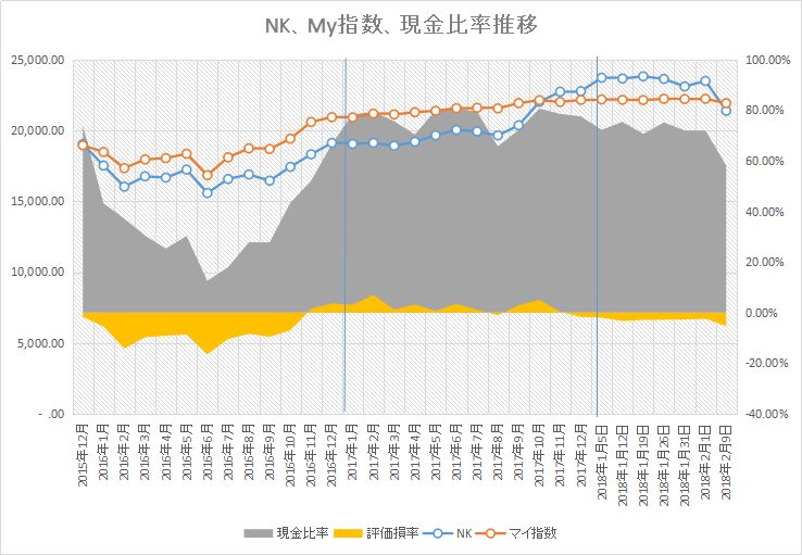 要は、現金+株式投資時価=総投資時価を日経平均と比較できるように