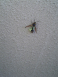 ベランダに出たら、スズ蜂がイモムシを